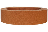 Die Rückseite dieser Riemen ist appretiert. Diese spezielle Behandlung sorgt dafür, dass die Rückseite glatter und etwas fester ist, was dem Riemen insgesamt mehr Stabilität verleiht. Bitte beachten Sie, dass das Leder daher nicht zum Wickeln (starkes Knicken oder Falten über Kanten) geeignet ist.